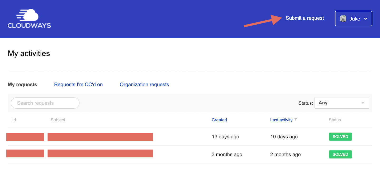 Cloudways Support Create a Ticket Submit a Request Cloudways Support Create a Ticket Submit a Request